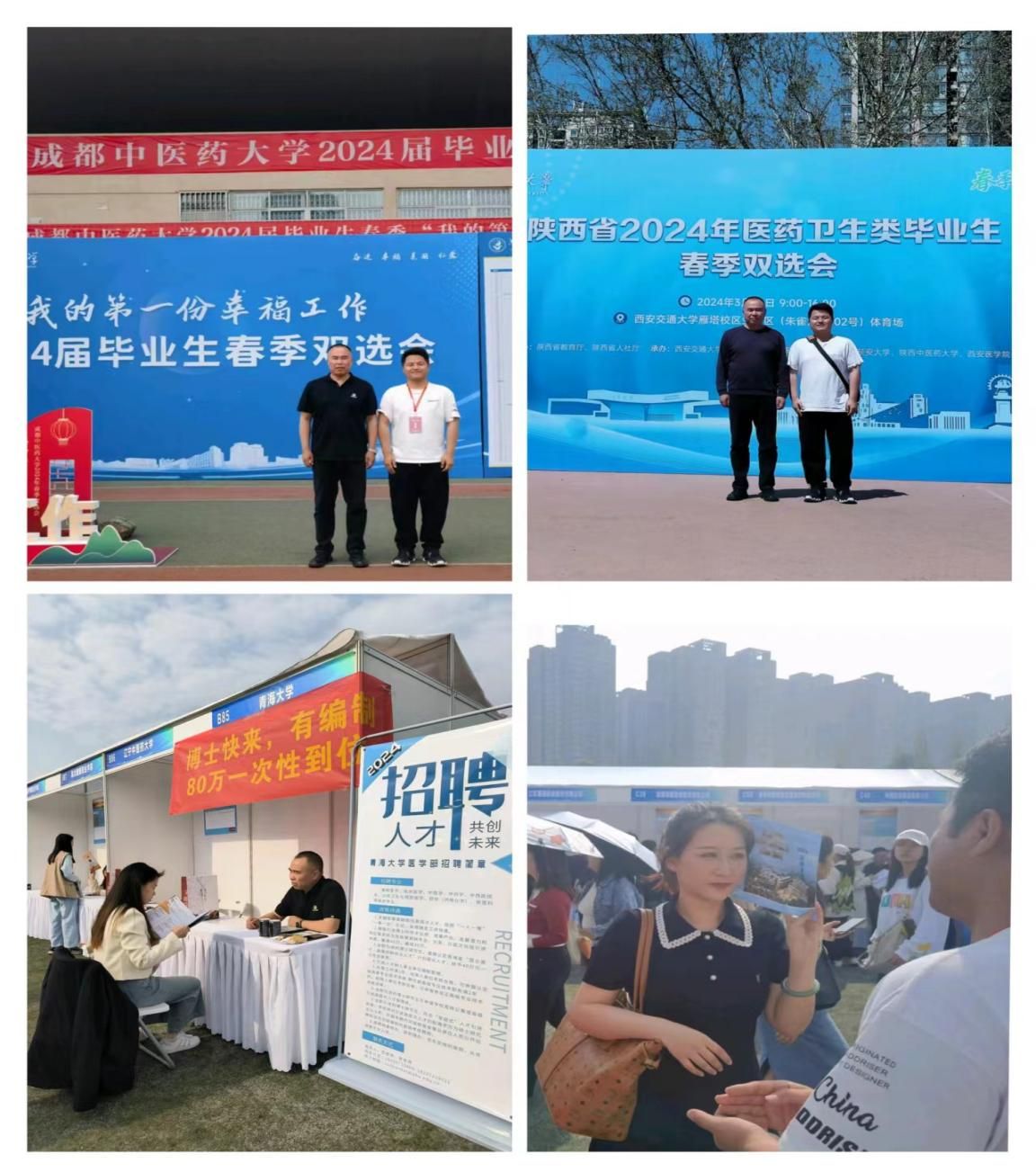 2024年3月28日至31日,为进一步加大beat365 手机版官方网站紧缺人才引进力度,拓宽引才渠道,beat365 手机版官方网站党委副书记、常务副院长苏占海、院组织人事李文佳老师前往西安交通大学、成都中医药大学参加医药类毕业生春季双选会。